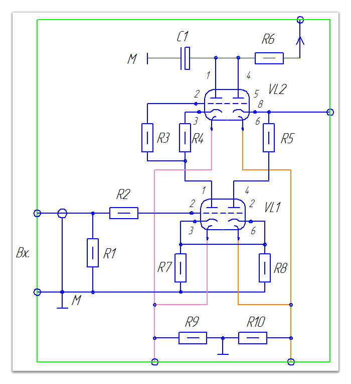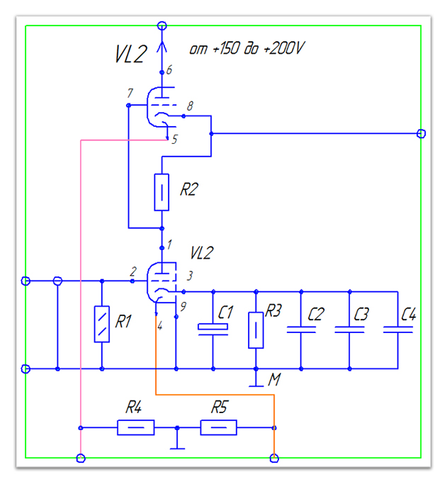 В катодной цепи для обеспечения автоматического смещения работы лапового каскада устанавливаются два красных светодиода повышенной яркости (колба диаметром 5 мм).