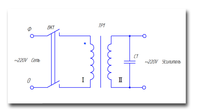 В данной схеме применяется сетевой фильтр без применения дорогостоящих неэлектролитических конденсаторов, но при этом обеспечивающий очень хорошее звучание усилителей. Представленный сетевой фильтр исключает постоянную составляющую бытовой сети, а так же осуществляет гальваническую развязку между усилителем и бытовой сетью, что благоприятно сказывается на воспроизведении аудиосигнала.